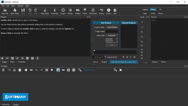 Shotcut to darmowe, wieloplatformowe narzędzie oferujące obsługę wielu formatów obrazu, dźwięku i wideo. Jest zintegrowane z zainstalowanymi kodekami w systemie i niezawodnie zarządza procesem edycji i ładowania. Prostota programu sprawia, że jest to jeden z najlepszych wyborów, nawet dla początkujących.